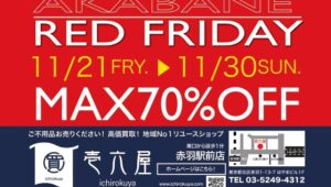 赤羽店のブラックフライデー、略してレッドフライデー! 11/21(金)~11/30(日) 最大70%OFF!!