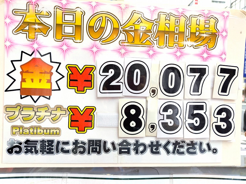 金:¥20,077(前日比+¥250)