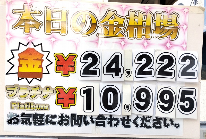 本日の貴金属相場をお知らせ致します。 12/22 壱六屋 赤羽駅前店