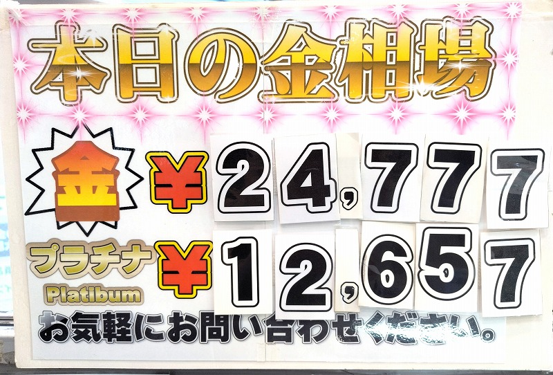 本日の貴金属相場をお知らせ致します。 12/26 壱六屋 赤羽駅前店