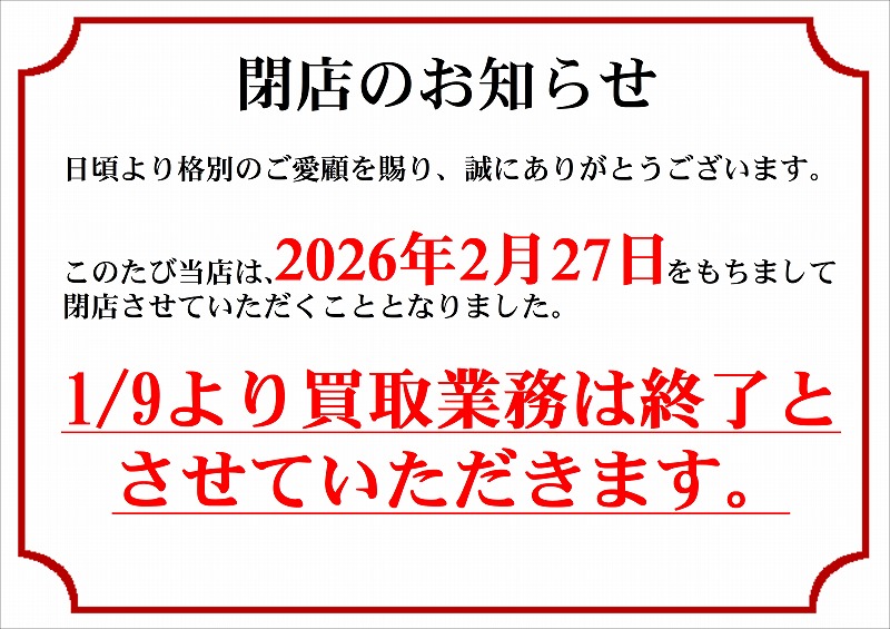 現在は買取業務を停止しており、販売のみにて営業致しております。