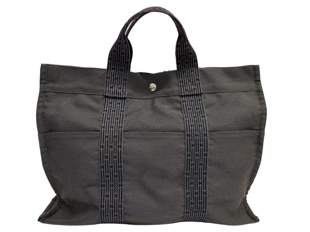 エルメス(HERMES) キャンバス エールライン トートバッグMM グレー は、ホック開閉タイプの大型ハンドトートです。