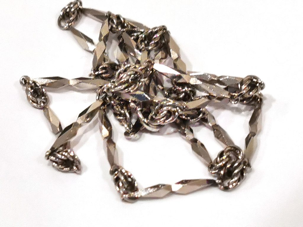 現在こうしたタイプのネックレスはお見掛けすることが減り、代わりに小さなペンダントトップと華奢なチェーンのネックレスが流行となっております。